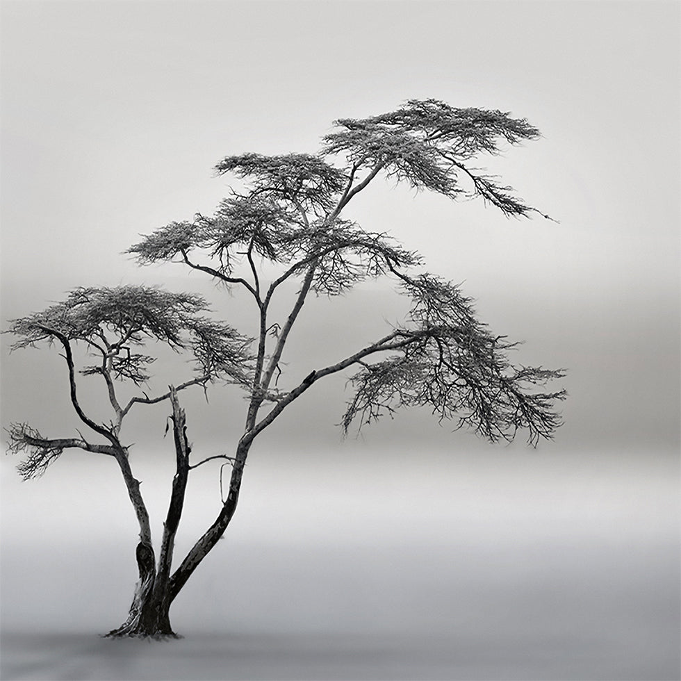 Uma árvore solitária surge em silhueta no denso nevoeiro acima da savana em Naivasha, no Quénia. O clima monocromático capta o silêncio, a profundidade e a paisagem aberta, onde o tempo e a distância se fundem. A fotografia “uma história muito longa” foi criada por Piet Flour e exala calma, poesia e reflexão. Uma imagem de saudade, espaço e horizonte infinito.