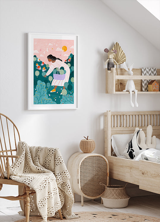 A Woman Tree Picking de Bea Müller - Papel de qualidade premium com superfície lisa fosca e toque elegante. O acabamento fosco reduz o brilho e proporciona uma aparência refinada e atemporal. Forte e durável para uso duradouro, ideal tanto para ambientes profissionais quanto para displays decorativos.