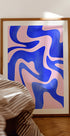 Esta arte abstrata ousada apresenta formas de onda azuis fluidas contra um fundo rosa suave. As curvas dinâmicas criam ritmo e movimento e combinam diversão com minimalismo moderno. Uma peça distinta que adiciona energia fresca e talento artístico a qualquer espaço moderno.
