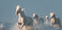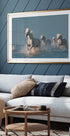 Uma fotografia poderosa dos cavalos brancos selvagens da Camargue, capturada enquanto galopam pelas ondas. Gotas de água brilham no ar, destacando sua força, movimento e espírito selvagem. Esta cena de tirar o fôlego expressa liberdade, energia e a beleza atemporal da natureza.