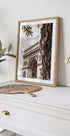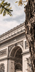 Uma impressão fotográfica refinada do Arco do Triunfo em Paris, emoldurada por galhos de árvores e luz suave do dia. Capturando as intrincadas esculturas e a arquitetura neoclássica do monumento, a obra de arte destaca um dos marcos mais emblemáticos da França, combinando história, cultura e elegância atemporal.