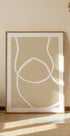 Um pôster minimalista com linhas brancas abstratas se cruzando sobre um fundo bege suave. Este design geométrico moderno adiciona simplicidade e elegância a qualquer interior