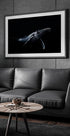 Uma poderosa fotografia subaquática discreta de uma majestosa baleia jubarte nadando graciosamente pelas profundezas escuras do oceano. Esta obra de arte dramática captura o tamanho e a beleza de um dos verdadeiros gigantes da natureza e é perfeita para criar um clima ousado e inspirador em qualquer espaço.