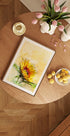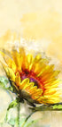 Uma aquarela vibrante de um girassol cheio de energia tropical de verão. As texturas pictóricas e as pétalas amarelas brilhantes trazem calor e alegria, uma obra de arte perfeita para decoração de inspiração botânica ou sazonal.