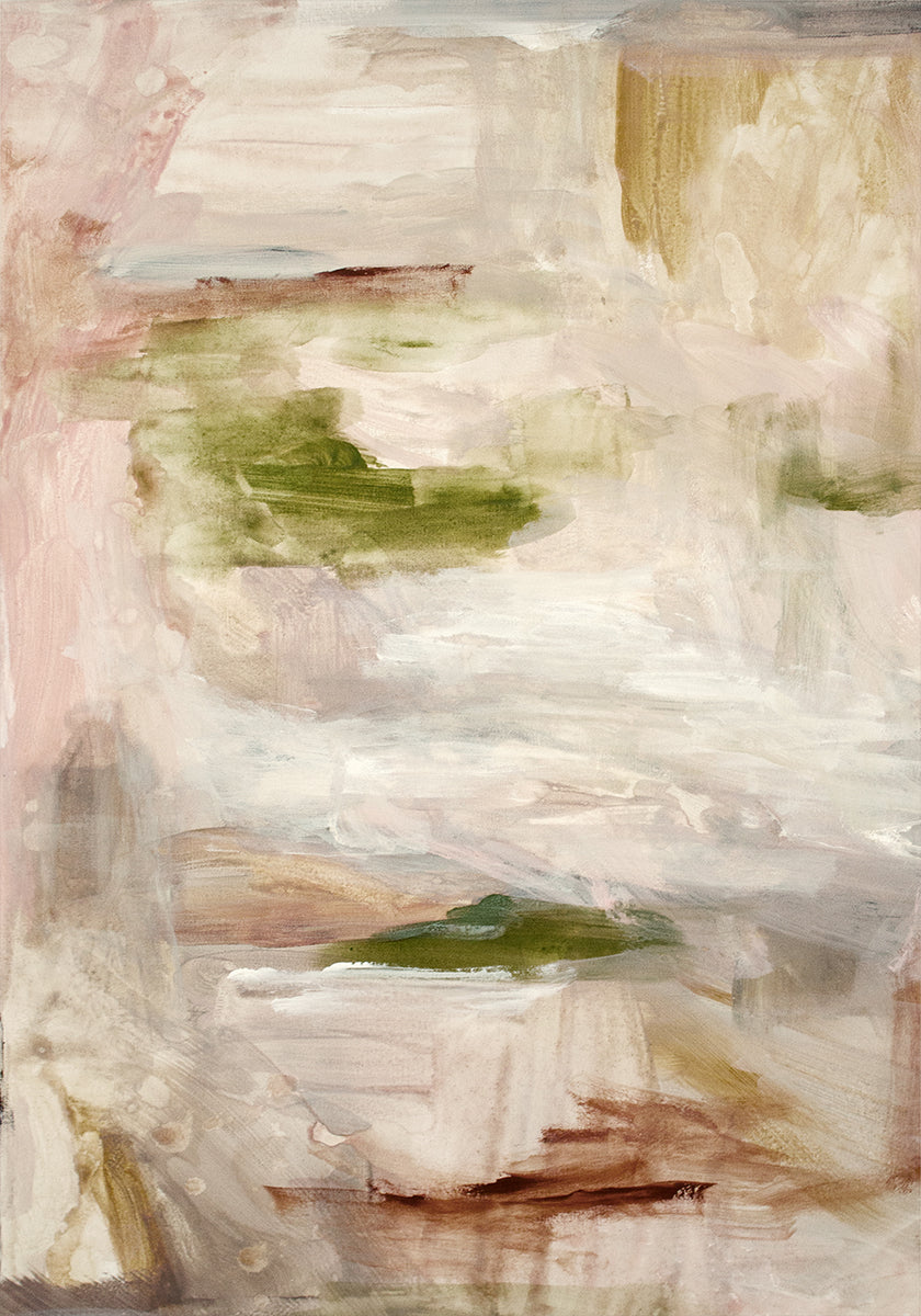 Cambria de Gemma Bardot captura a tranquilidade em pinceladas sutis e tons terrosos de bege, marrom e verde suave. Um motivo abstrato, onde camadas suaves e movimentos orgânicos criam profundidade e equilíbrio. Perfeito para espaços escandinavos que procuram uma expressão pacífica e intemporal com elegância moderna. Inspirado na paleta calma da natureza.