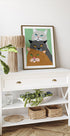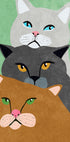 Uma ilustração ousada e moderna de três gatos estilizados empilhados em um retrato divertido. Com bigodes expressivos, olhos vivos e um design gráfico colorido, esta obra de arte é perfeita para os amantes de gatos e adiciona uma vibração peculiar e moderna a qualquer ambiente.