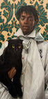 Cavalheiro com Gato de Damilare Jamiu - Papel de qualidade premium com superfície lisa fosca e toque elegante. O acabamento fosco reduz o brilho e proporciona uma aparência refinada e atemporal. Forte e durável para uso duradouro, ideal tanto para ambientes profissionais quanto para displays decorativos.