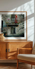 Chains of Gold by ambra captura um momento urbano colorido: uma jovem está em uma varanda de ferro forjado, onde correntes douradas serpenteiam como joias contra uma fachada desbotada. Uma porta vermelha, vasos de flores e sombras finas criam um contraste entre a pátina urbana e a poesia elegante – uma homenagem vibrante à arquitetura cotidiana.