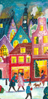 Oplev julestemningen i Caroline Bonne Müllers “Christmas in Amsterdam”. En farverig illustration af snedækkede kanalhuse, pyntede vinduer og en funklende juletræsscene langs vandet. Hund og forbipasserende giver liv i snevejret, mens varme lys kontrasterer den frostklare nat. En hyldest til byens vintermagi og hyggelige gader.