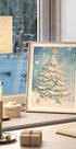 Bring home the hush of winter nights with a painterly Christmas scene: a star-crowned fir rises amid glittering snowfall, twinkling ornaments and ribboned gifts nestled below. A deep midnight blue sky and distant village glow wrap the moment in nostalgic warmth—perfect for festive, cozy interiors. Let it glow all season.