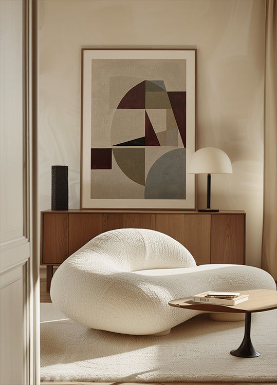 Construído por Dan Hobday sobrepõe traços suaves e pictóricos e formas enevoadas em bege quente e marrom profundo, criando um equilíbrio calmo e contemporâneo de movimento e espaço. Mínima, mas expressiva, sua pincelada gráfica e paleta neutra fazem uma afirmação fácil para interiores modernos e cantos serenos e considerados.