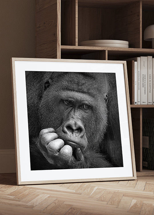Um retrato forte e monocromático do dorso prateado Buzandi do Zoológico de Hannover: um close-up do rosto, onde os olhos profundos e pensativos transmitem calma e saudade. Antje Wenner-Braun capta um momento íntimo de reflexão silenciosa, onde o tempo e o espaço parecem desaparecer no pensamento e no sonho. Um retrato que convida à calma, à empatia e à reflexão.