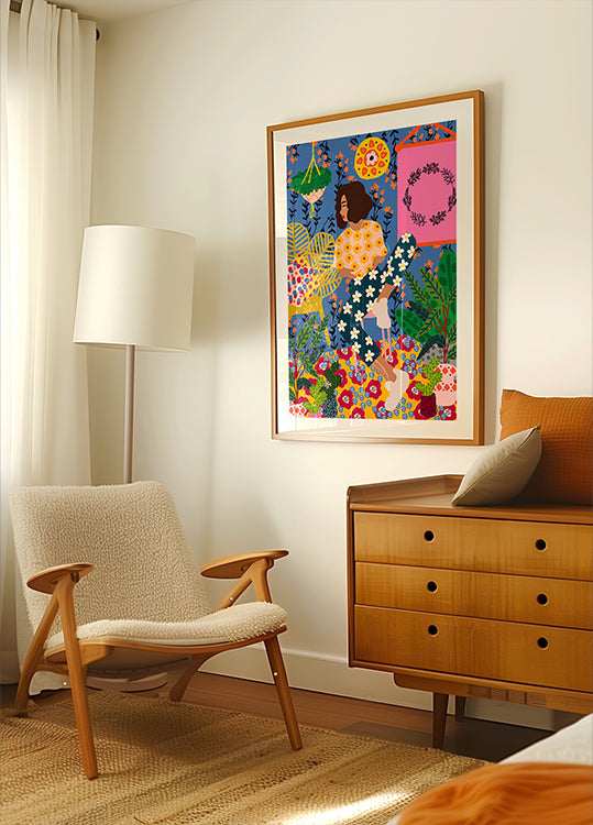 Floral Retreat Girl de Rafaela Mascaro - Papel de qualidade premium com superfície lisa fosca e toque elegante. O acabamento fosco reduz o brilho e proporciona uma aparência refinada e atemporal. Forte e durável para uso duradouro, ideal tanto para ambientes profissionais quanto para displays decorativos.