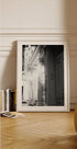 Uma elegante fotografia em preto e branco de uma loja Gucci, destacando a fachada elegante e a placa icônica. Capturando o espírito do luxo italiano e da moda atemporal, esta impressão torna-se uma escolha refinada de arte de parede para interiores inspirados no design, na cultura e no mundo da moda.