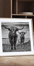 Um retrato sugestivo e monocromático de uma vaca das Terras Altas, onde longas franjas e chifres proeminentes formam uma silhueta crua e gráfica contra um fundo suave e enevoado. Os contrastes profundos equilibram a calma e a selvageria e conferem ao motivo uma força intemporal. Fotografia de Stéphane Pecqueux. Perfeito para chamar a atenção na sala de estar, no escritório ou na decoração moderna e nórdica.