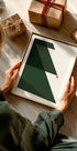 Skab stille julestemning med Holy Night, Silent Night 2 af Kubistika: et minimalistisk, grafisk motiv hvor geometriske grantræer rejser sig mod en dybgrøn nattehimmel, strøet med funklende stjerner. En rolig og moderne hyldest til vinterens magi, der løfter både stue og galleri. Perfekt som elegant vinterpynt og gaveidé.
