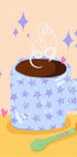 A ilustração Coffee Time Retro de Dirkie Nell captura o aconchego de uma cena colorida e de inspiração retrô: uma xícara de café fumegante com detalhes sorridentes, estrelas divertidas e uma colher pequena, em tons quentes de marrom, amarelo e rosa. Uma expressão alegre e descolada que traz ao ambiente um clima de café, nostalgia e alegria cotidiana.