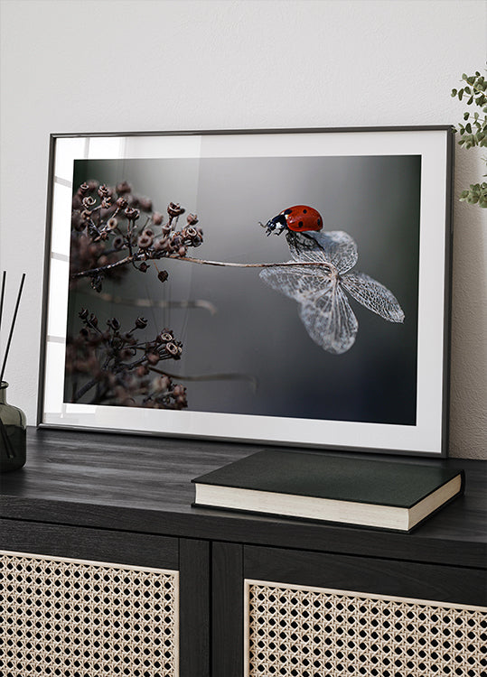 Joaninha em hortênsia. por Ellen van Deelen - Papel de qualidade premium com superfície lisa fosca e toque elegante. O acabamento fosco reduz o brilho e proporciona uma aparência refinada e atemporal. Forte e durável para uso duradouro, ideal tanto para ambientes profissionais quanto para displays decorativos.