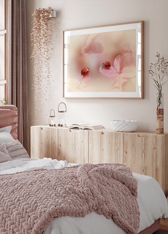 Joaninhas em hortênsia rosa. por Ellen van Deelen - Papel de qualidade premium com superfície lisa fosca e toque elegante. O acabamento fosco reduz o brilho e proporciona uma aparência refinada e atemporal. Forte e durável para uso duradouro, ideal tanto para ambientes profissionais quanto para displays decorativos.
