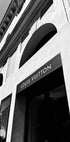 Uma impressionante fotografia em preto e branco da loja Louis Vuitton em Roma, capturando os arcos refinados e a fachada moderna e luxuosa. Esta estampa celebra a elegância atemporal de uma das casas de moda mais icônicas do mundo e torna-se uma adição sofisticada a interiores inspirados em viagens, arquitetura e alta costura.