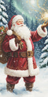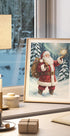 Papai Noel se move por uma floresta nevada, seu casaco vermelho brilhando contra os abetos escuros, enquanto as estrelas e a neve silenciosa criam um momento encantado. Uma homenagem poética à magia do inverno de Andreas Magnusson com o icônico Papai Noel no centro. Uma dose perfeita de espírito natalino. Criado para dias aconchegantes de dezembro.