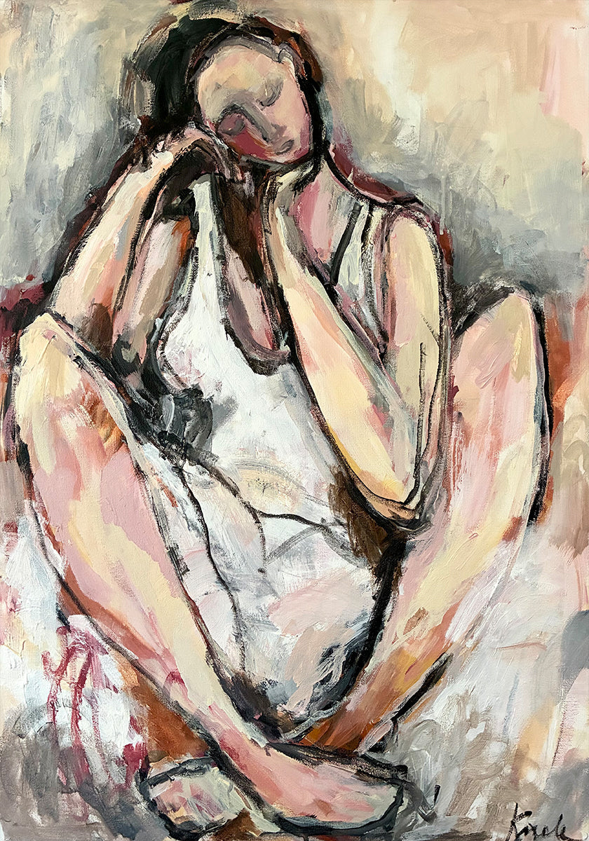 Morning de Magdalena Krzak capta o momento tranquilo entre o sono e o despertar: uma figura feminina envolta em tons suaves de rosa e branco, com a luz da manhã deslizando sobre os contornos. O estilo sutil e abstrato-figurativo cria calma e reflexão e confere ao ambiente um equilíbrio poético e feminino. Perfeito para o quarto ou para o canto tranquilo.