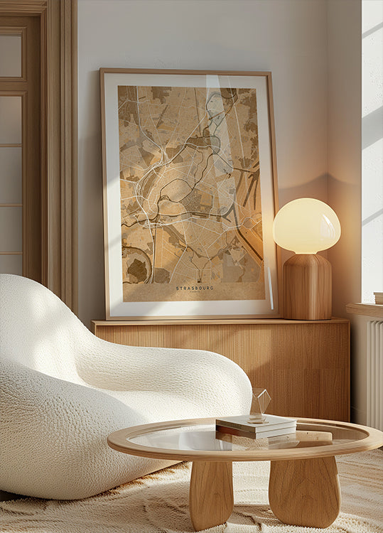 Mapa vintage sépia de Estrasburgo França por Rosana Laiz Blursbyai - Papel de qualidade premium com superfície lisa fosca e toque elegante. O acabamento fosco reduz o brilho e proporciona uma aparência refinada e atemporal. Forte e durável para uso duradouro, ideal tanto para ambientes profissionais quanto para displays decorativos.