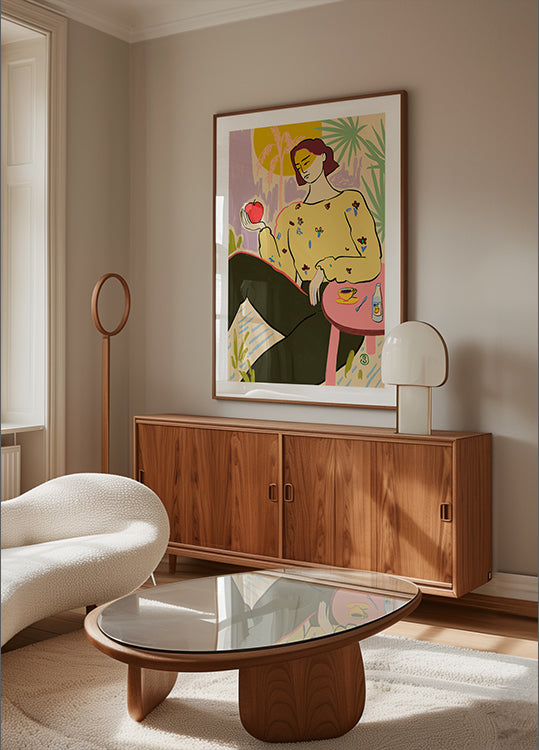 Woman With Apple de Sandra Poliakov - Papel de qualidade premium com superfície lisa fosca e toque elegante. O acabamento fosco reduz o brilho e proporciona uma aparência refinada e atemporal. Forte e durável para uso duradouro, ideal tanto para ambientes profissionais quanto para displays decorativos.