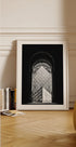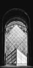 Uma fotografia cativante em preto e branco da pirâmide do Louvre emoldurada por uma entrada em arco, unindo a arquitetura moderna de vidro com a grandeza histórica de Paris. Expressando arte, história e elegância intemporal, esta impressão torna-se um elemento indispensável em interiores inspirados na cultura, nas viagens e em monumentos icónicos.