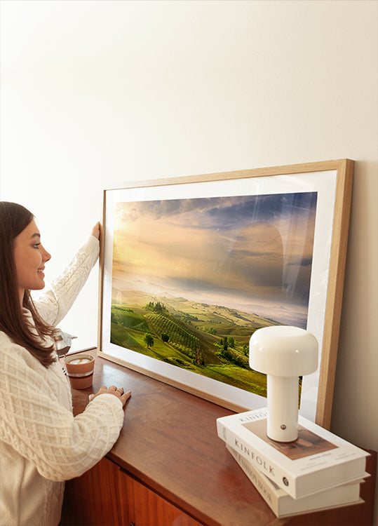 Podere Belvedere's Sunrise de Arnaud BRATKOVIC - Papel de qualidade premium com superfície lisa fosca e toque elegante. O acabamento fosco reduz o brilho e proporciona uma aparência refinada e atemporal. Forte e durável para uso duradouro, ideal tanto para ambientes profissionais quanto para displays decorativos.