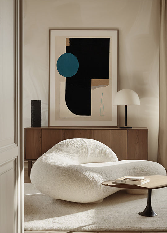 Noche Oscura I af Ildefonso Martín forener mørke toner og en dyb blå cirkel i en rolig, geometrisk balance. Lag af collage og fine blyantspor skaber tekstur og dybde, mens kontrasten mellem sort og blå giver motivet en mystisk glød. En moderne, abstrakt komposition med meditativ kraft. Skaber et stille fokuspunkt i stue, galleri eller kontor.