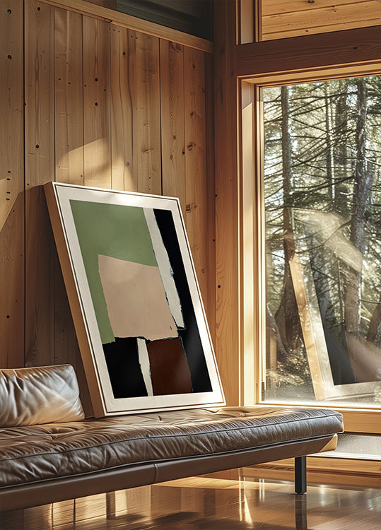 Noir series no.6 af Andrea Reichhart er en minimalistisk, geometrisk komposition, hvor bløde beigenuancer, sort og dæmpet grøn mødes i rolige farvefelter og præcise linjer. Kontrasterne skaber en balanceret rytme, der emmer af moderne ro og subtil spænding i et stilrent, abstrakt udtryk. Med bløde former og skarpe kanter.