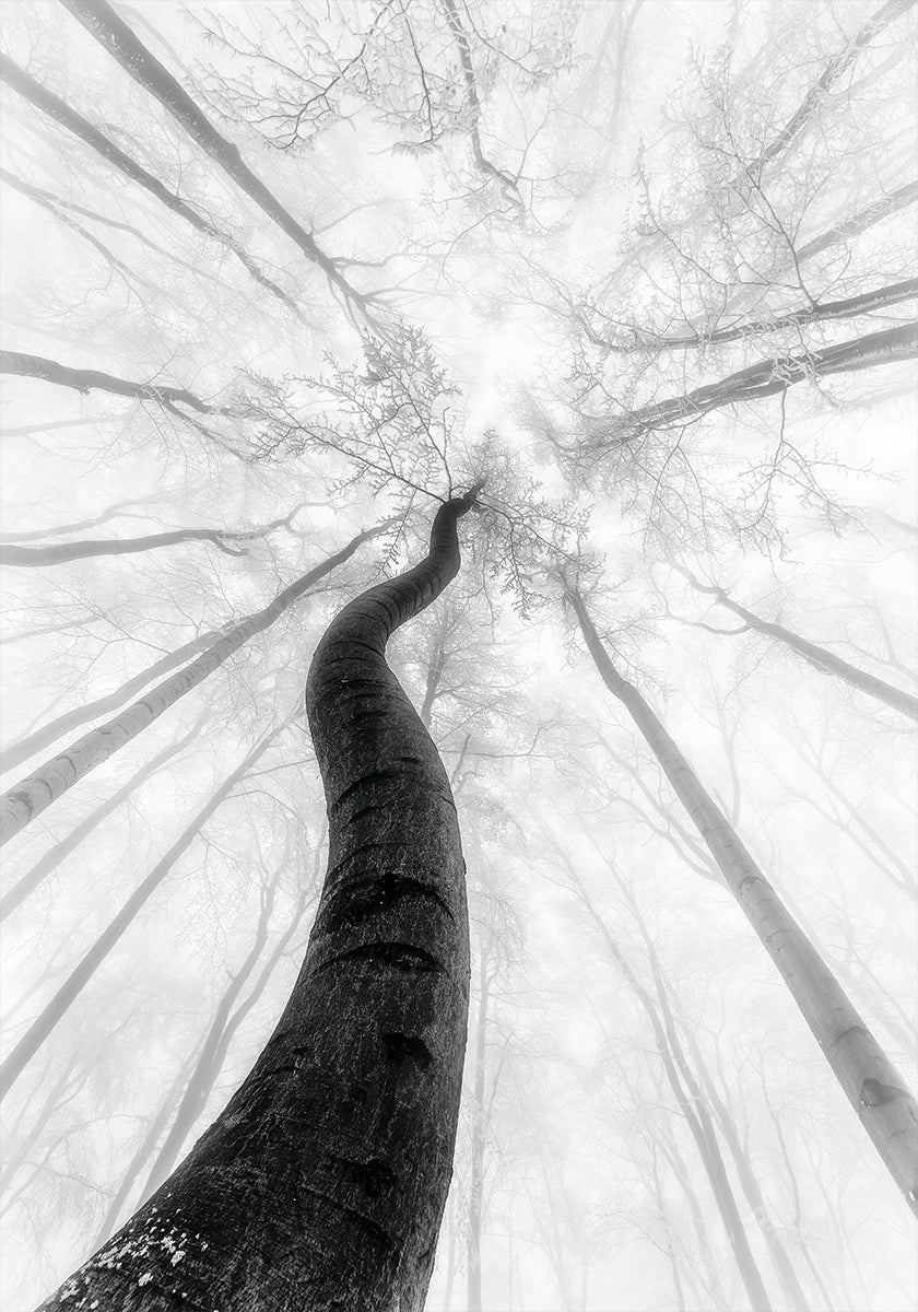 Um momento tranquilo de inverno capturado pelo fotógrafo Tom Pavlasek: faias esbeltas ficam na neve, envoltas em neblina e geada. Os tons suaves de cinza e branco criam profundidade e calma, enquanto as tensões repetidas desenham linhas gráficas na paisagem. Uma atmosfera minimalista e nórdica para a casa. Perfeito para ambientes que buscam clareza, silêncio e natureza.