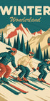 Winter Wonderland 2 de Andreas Magnusson captura o charme atemporal de um pôster de viagem retrô: picos alpinos nevados, sombras profundas no azul frio e pistas de esqui frescas cortando o vale tranquilo. Um motivo atmosférico de inverno que evoca uma sensação de aventura, nostalgia e aconchego no lar. Perfeito para chamar a atenção na sala de estar, hall de entrada ou cabine.