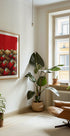 Os picos das montanhas douradas e vermelhas erguem-se em camadas de formas geométricas, como uma paisagem acolchoada de inverno banhada pela luz tranquila de dezembro. Encostas pontilhadas de neve e profundas nuances carmim encontram finos detalhes dourados e criam ritmo e calma. Uma paisagem moderna e festiva de Stephen Wade, ideal para o minimalismo nórdico. Perfeito como um toque de cor quente na sala de estar ou no hall de entrada.