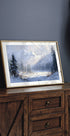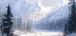 Uma paisagem sonhadora e coberta de neve desdobra-se em pinceladas suaves: pinheiros tranquilos, campos brancos e um céu em tons frios de azul onde dançam leves flocos de neve. Um toque de luz dourada do crepúsculo cria profundidade e calor. O motivo exala a calma do inverno, a poesia nórdica e uma atmosfera sutil de Natal - perfeito para quartos aconchegantes.