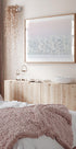 Et poetisk vinterlandskab af EMELIEmaria: pastelrosa og lilla toner maler himlen over et stille, snedækket terræn. Slanke birketræer tegner fine silhuetter, mens en diskret halvmåne svæver over horisonten. Motivet emmer af ro, nordisk kulde og blid magi – perfekt til rolige, drømmende rum. Skaber varme kontraster i kolde måneder.