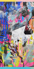 Uma impressionante explosão de cores e texturas, este pôster abstrato mistura pinceladas ousadas, tinta pingando e detalhes em camadas inspirados em graffiti. Com rosa neon, azul elétrico e amarelos vibrantes contra contrastes mais escuros, cria uma declaração crua e energética – perfeita para interiores modernos e amantes da arte contemporânea.