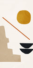 Um poster moderno e minimalista abstrato com formas geométricas impressionantes em tons terrosos de bege, ocre, preto e terracota. O design limpo e minimalista proporciona equilíbrio e harmonia, ideal para interiores contemporâneos, boho ou escandinavos.