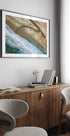 Uma foto de drone de tirar o fôlego da costa da Califórnia em Big Sur. As ondas quebrando encontram a costa arenosa em uma composição abstrata e atraente de texturas da natureza. Perfeito para trazer a beleza e a tranquilidade do litoral para dentro de sua casa.