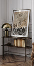 O pôster City Breaks de Simon Goggins captura a alma de Amsterdã em uma colagem de inspiração retrô: canais sinuosos, esbeltas casas holandesas com empenas e marcos icônicos, sobrepostos a um evocativo mapa da cidade. As borboletas lendárias acrescentam poesia à paisagem urbana – um tributo ao desejo de viajar, à nostalgia e ao charme urbano. Criado por Simon Goggin.