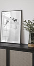Uma elegante fotografia em preto e branco que captura um momento divertido de relaxamento: uma mão segura uma taça de vinho enquanto a outra levanta uma garrafa de Aperol da cama. Minimalista e espirituosa, esta obra de arte de alto contraste une estilo de vida, humor e elegância em uma estética monocromática moderna.