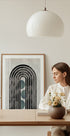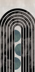 Um impressionante pôster abstrato com arcos pretos em camadas envolvendo uma coluna de semicírculos verdes. A composição geométrica combina simetria, profundidade e contraste e cria um design modernista atraente. Perfeito para interiores minimalistas, espaços modernos e para quem gosta de arte abstrata.