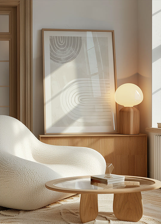 Um pôster minimalista e relaxante com dois laços desenhados à mão em tons suaves de bege e branco. As formas orgânicas e a simetria calma criam uma composição equilibrada, ideal para interiores japoneses, escandinavos ou modernos.