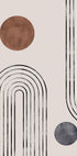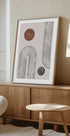 Um elegante pôster abstrato com fortes formas geométricas, círculos e linhas pretas curvas sobre um fundo bege. Inspirada no design moderno de meados do século, esta obra de arte minimalista combina equilíbrio, ritmo e elegância, tornando-a uma peça versátil para interiores modernos.