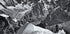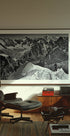 Uma impressionante fotografia em preto e branco de um alpinista parado em um estreito cume nevado nos Alpes franceses. A vista dramática captura picos irregulares, vales profundos e geleiras que se estendem até o horizonte. Uma forte homenagem à aventura, à resistência e à beleza das paisagens alpinas.