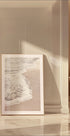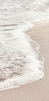 Uma fotografia minimalista e reconfortante de ondas suaves do oceano banhando a costa arenosa. Com tons suaves de bege e estruturas finas, a obra capta o ritmo calmo do mar e a beleza atemporal da simplicidade.