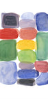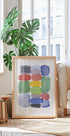 Um pôster abstrato moderno com blocos coloridos em aquarela dispostos em formas geométricas divertidas. Os tons sobrepostos de azul, vermelho, verde, amarelo e preto criam uma expressão vibrante mas minimalista, perfeita para interiores modernos e paredes de galerias.