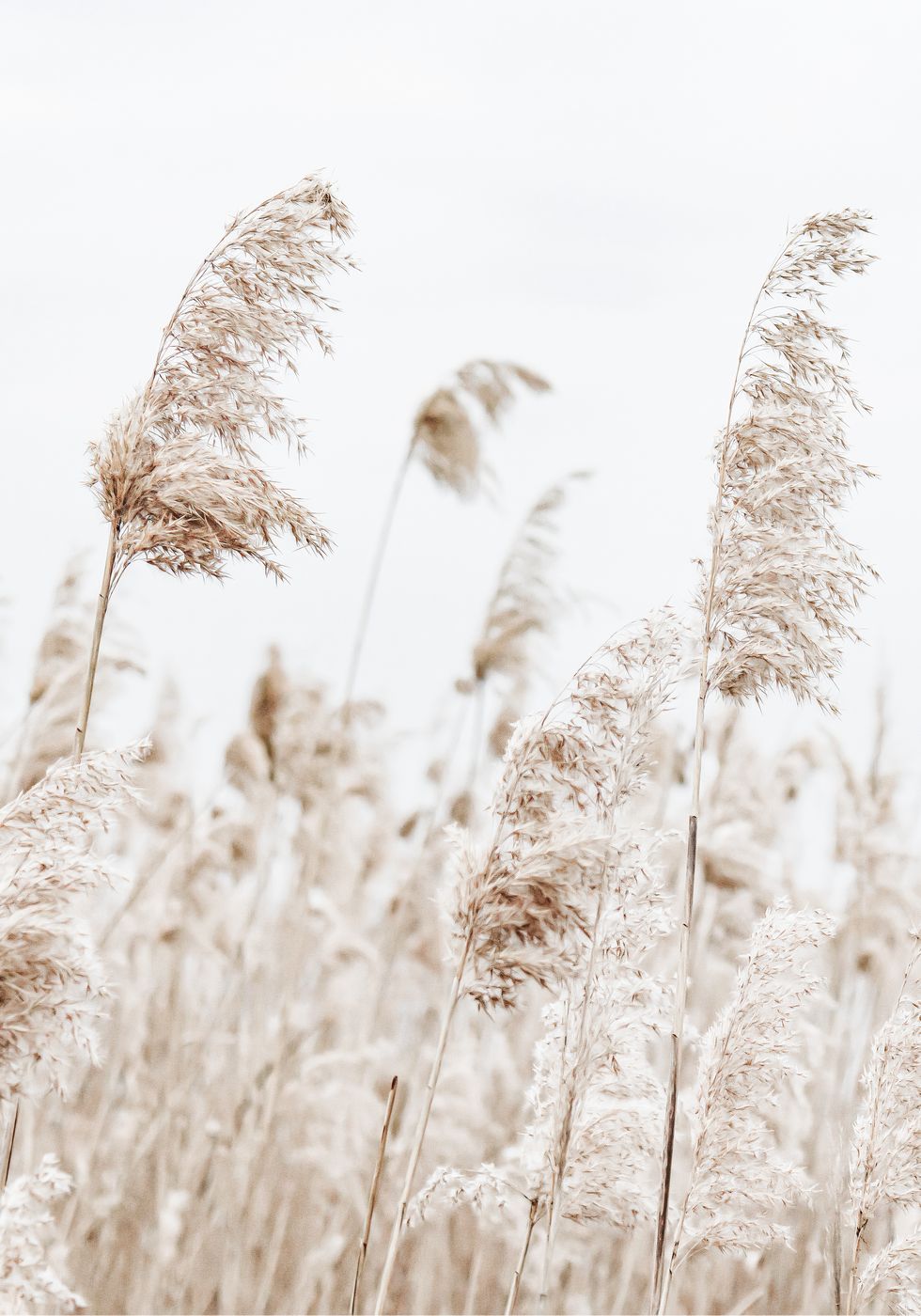 Uma fotografia suave e minimalista de juncos secos balançando ao vento. O bege suave e as cores neutras criam uma atmosfera acolhedora e orgânica, perfeita para uma decoração boémia, escandinava ou inspirada na natureza. Um pôster calmo que traz a beleza da natureza para qualquer ambiente.