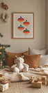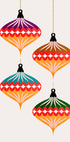 Uma obra de arte natalina colorida e divertida com bolas geométricas de Natal em cores fortes. Com formas abstratas e padrões festivos, o design traz alegria e estilo moderno à decoração de parede sazonal, perfeita para as celebrações de Natal.